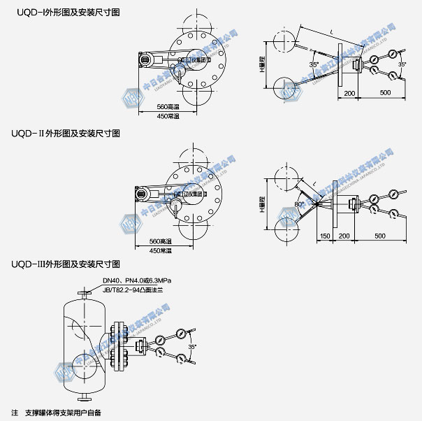 UQD系列電動(dòng)浮球液位變送器適用于工業(yè)生產(chǎn)過程中敞開或承壓容器內(nèi)的液位變送,有測量和信號(hào)變送兩部分組成,按其測量部分結(jié)構(gòu)特點(diǎn)分普通型、大擺角型、外裝型三種。其信號(hào)變送部分不僅在現(xiàn)場直觀地顯示出液位變化,還可輸出4~20mA模擬信號(hào)及疊加在此信號(hào)上附加HART協(xié)議的數(shù)字信號(hào).具有使用安全、性能可靠、維修方便.該儀表可廣泛適用于粘稠、臟污、易燃易爆及腐蝕性介質(zhì)以及其它類介質(zhì)液位的測量及液位信號(hào)的變送,是石油、化工、冶金、電力及輕工等工業(yè)部門生產(chǎn)過程控制中用于液位測量的理想儀表。