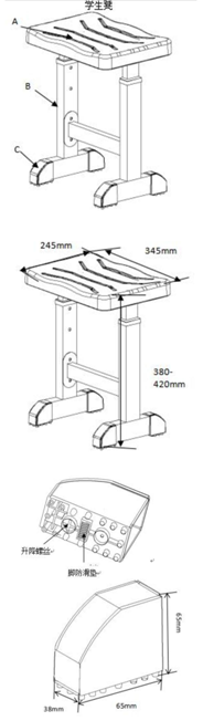 2、尺寸:長 650mm×寬 450mm×高 30mm(±2mm)顏色/高度可根據學校要求定制。